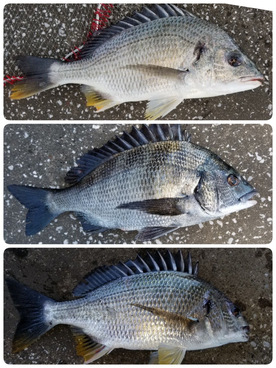 黒鯛家族さん、マサさん、今日もニコニコ☺️47センチ3枚黒鯛が戻って来た?