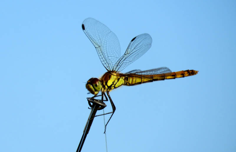 童謡では竹竿ですが、某所下では正真正銘、ロッドのトップガイドの先に止まって居ます。此処までコケにされる釣り人も珍しい!・・やはり、私はドジなのか!・・ま〜無駄なキャストをして坊主の人も居るからドッコイ、ドッコイか?・・負け惜しみ?・・慰め?・・落ち込む日々が続く!・・頑張りなよ!と言って呉れるのは ビールだけ!・・違う、違う、ビールじゃ無い!・・発泡酒・・麦とホップで有る。あれ?特定の宣伝は禁止のはず!・・これは NG?・・ドジ君は貧しいビールを飲んでるな!との噂!・・仕方なかんべ〜下流老人なんだから!