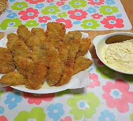 先日のコアジを全てアジフライにしました🎵自家製タルタルソースを造り夕食に加えます🎵