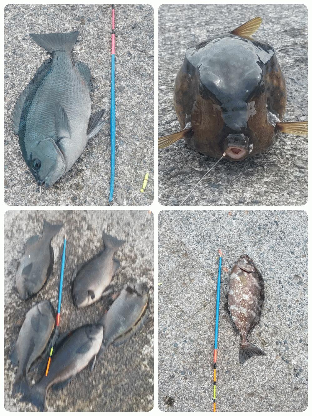 メジナ、カイズ、アイゴ、イサキ、巨大イスズミ(60?)はばらしたけど竿が折られ無くて良かったです(笑)
