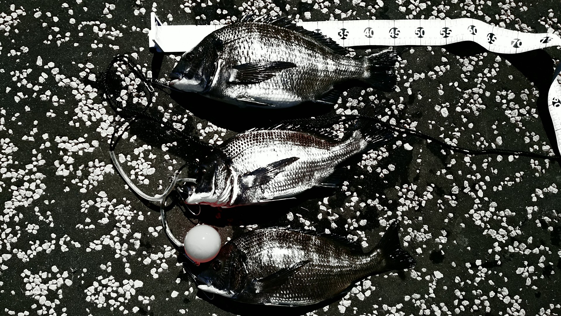 前半にクロダイ46センチと44センチ2匹の計3匹でした❗️