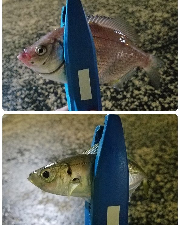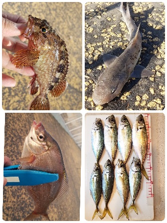 明るい時間帯にカサゴ、海タナゴ、ホシザメ、噛みつきハゼが釣れたけどアジは釣れない