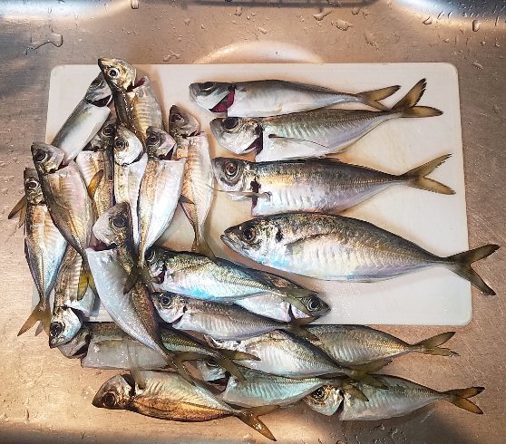 小アジの群れが回遊して20センチ以下が多いです(笑)