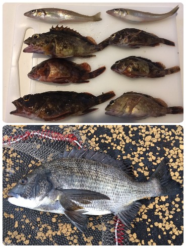 アジ、シマアジ、メジナ、サバ、ハゼ、アナハゼ、チャリコ、メバルで8種類釣れました