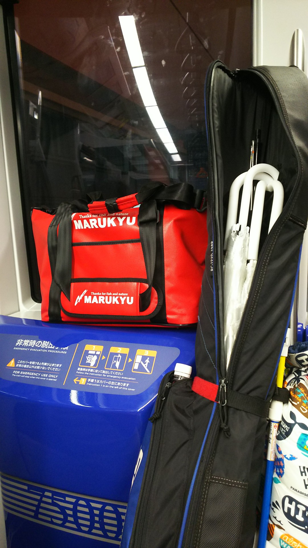 格好いいマルキューさんのバックとロッドケースは竿より傘のほうが多い。