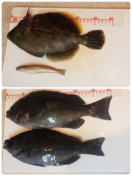 アイゴ、フグ、コサバ、キス、メジナ、カワハギが釣れました‼️