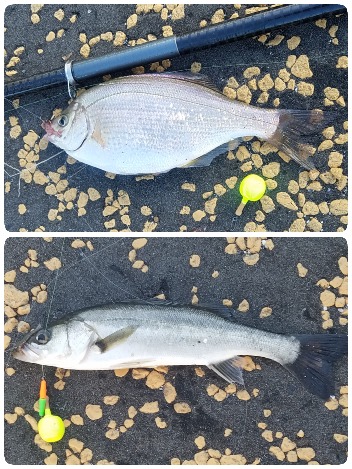 明るい時間帯は浮きフカセで海たなごとセイゴが食い付いた‼️