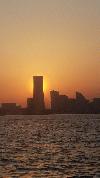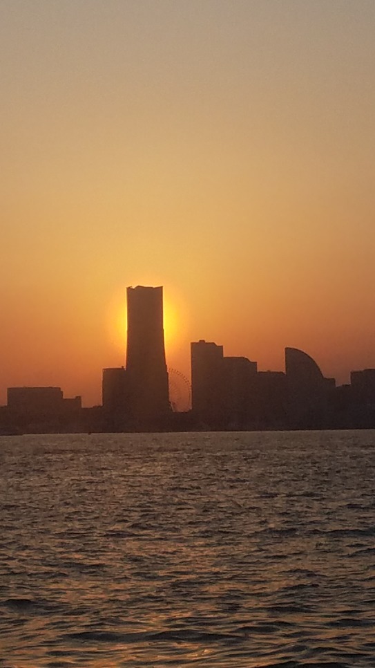 ランドマークに隠れた夕陽