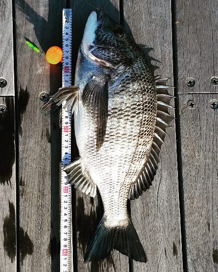 やっと釣れたクロダイはいぶし銀の綺麗な1枚です(笑)