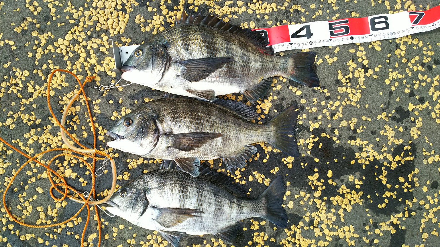 本日はクロダイ46センチ頭に3匹でした❗️
