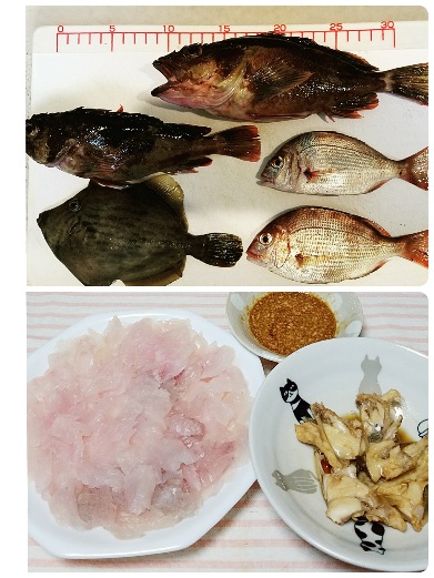 カサゴ、マダイ?カワハギの刺し身はキモ醤油で