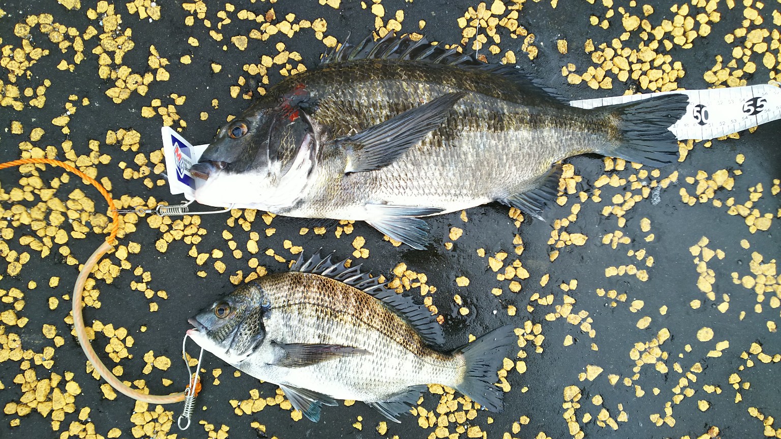 クロダイ49センチと小型の2匹。