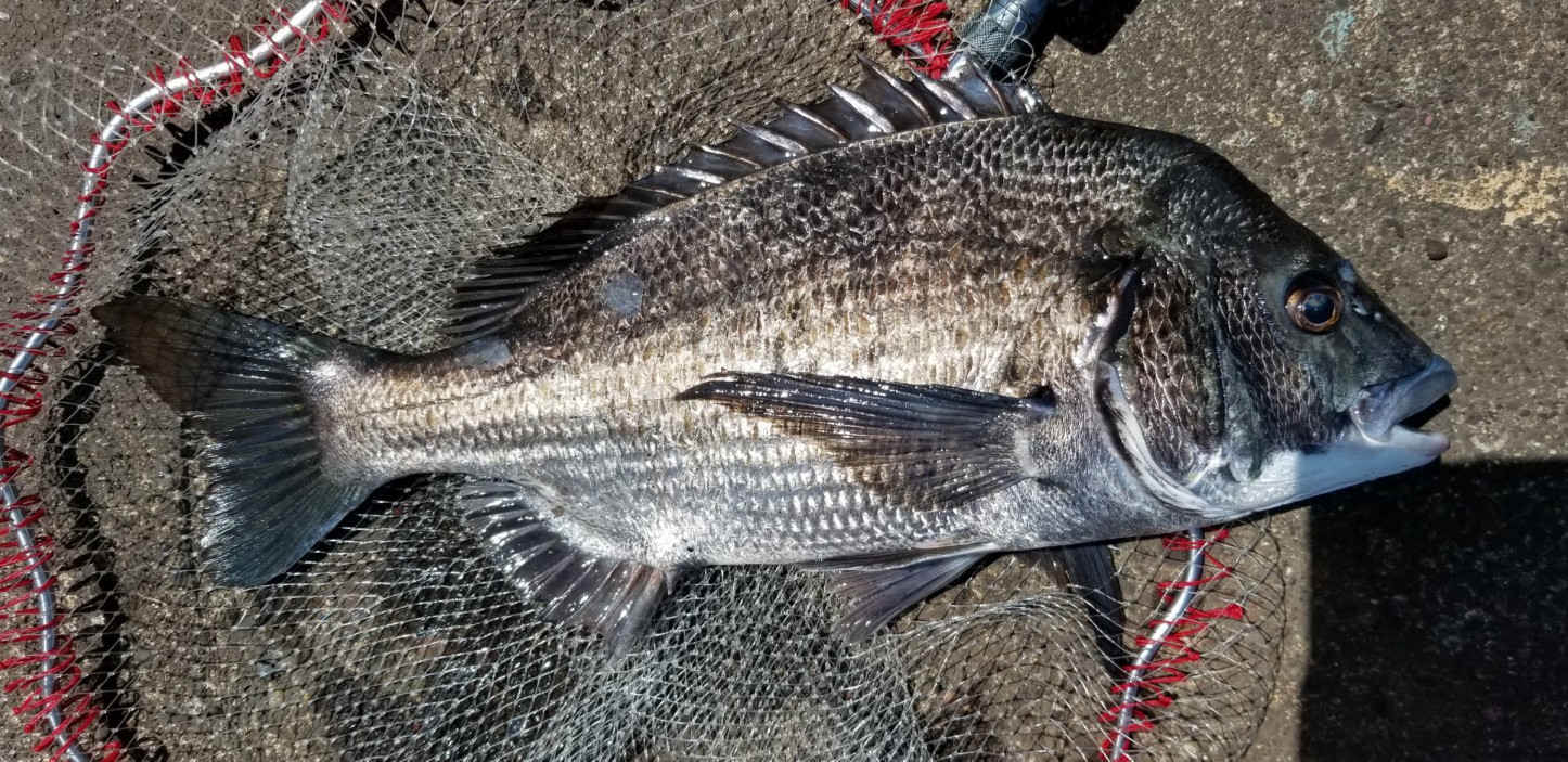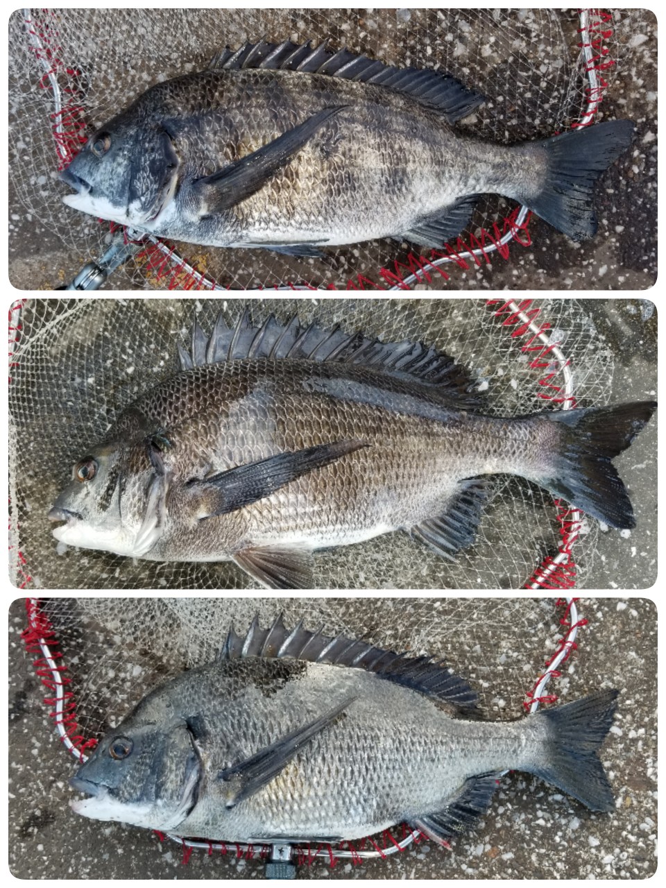 マサちゃん黒鯛釣れたね、黒鯛パパ俺もなんとか一枚50センチゲット。