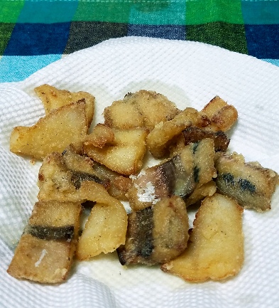 夕方の短時間ですけどキスと頂き物サバの竜田揚げです🎵旨い🍴😆✨