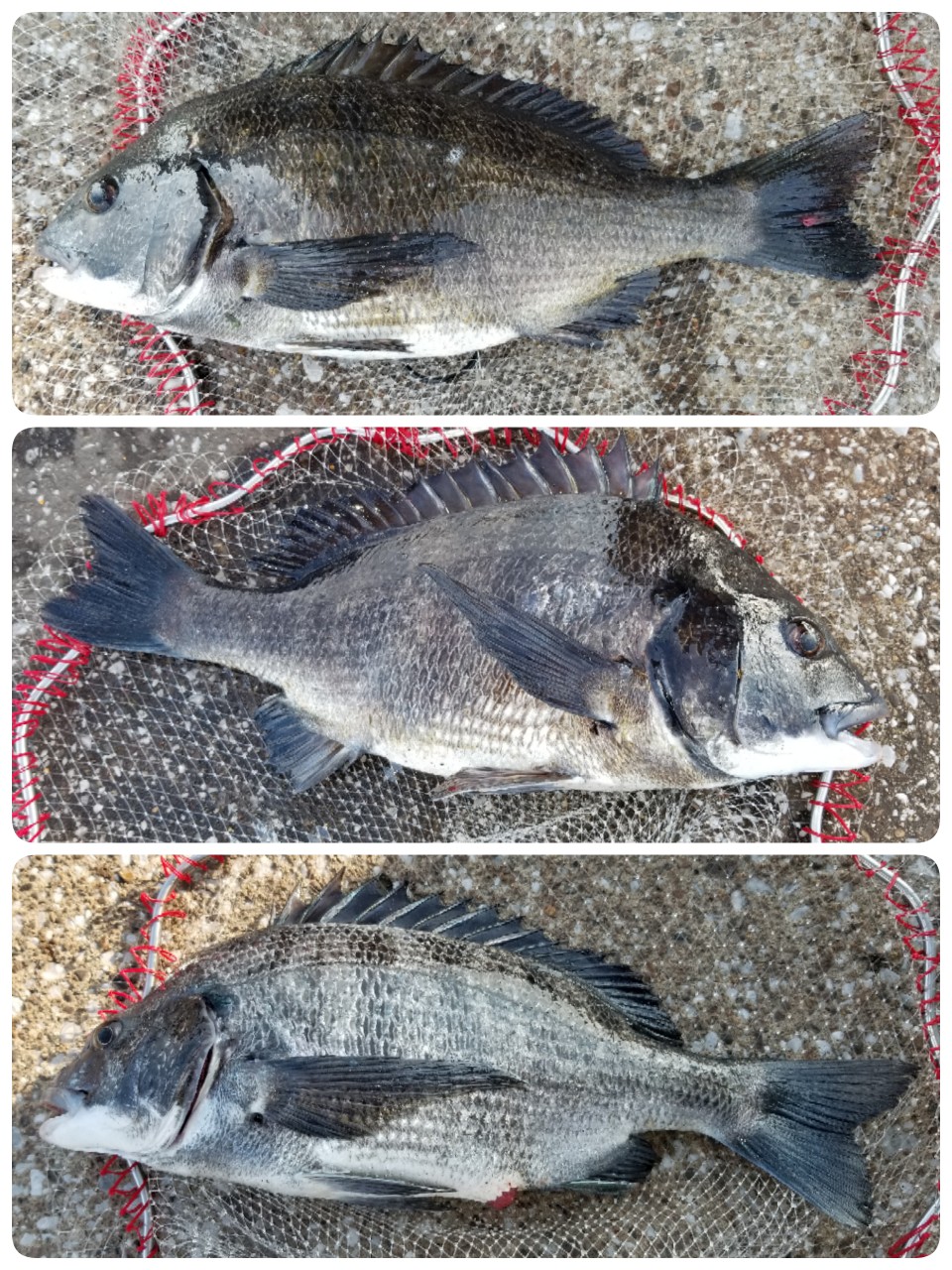黒鯛家族さん、マサさん、今日もニコニコ☺️47センチ3枚黒鯛が戻って来た?