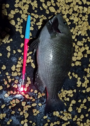 久しぶりに釣れましたよ、キビレ43センチ36に黒鯛は36センチのチビです、大きいの釣れませんよ。