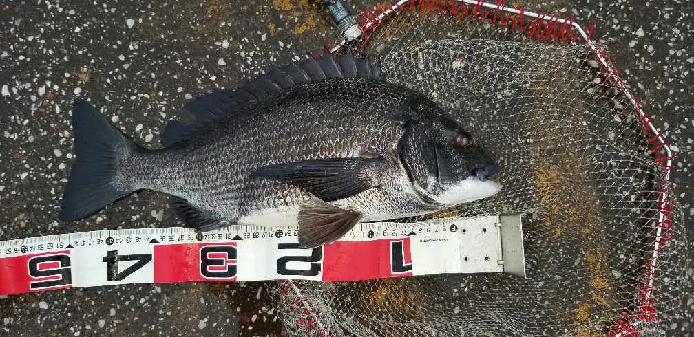 黒鯛家族さんおはようございます、雨のなか一時間頑張ってなんと51センチ釣れました。