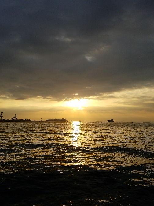 向い風強風で波も打ち付ける状況でした。