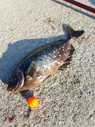心折れてフカセ釣りに変えるけどサンバソウの猛攻で撃沈、唯一の釣果はアイゴのみ(笑)