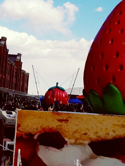 日曜日まで横浜イチゴフェスティバルを赤レンガ倉庫でイベント中🎵土曜日に行ったけどショップに長蛇の列❗イチゴの香りに酔いました(笑)