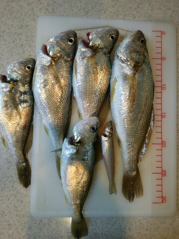 イシモチがぽつりぽつりと釣れた(笑)