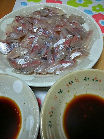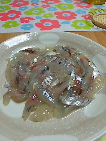 シマアジもマアジ同様に細切り刺身でイタダキマス🎵