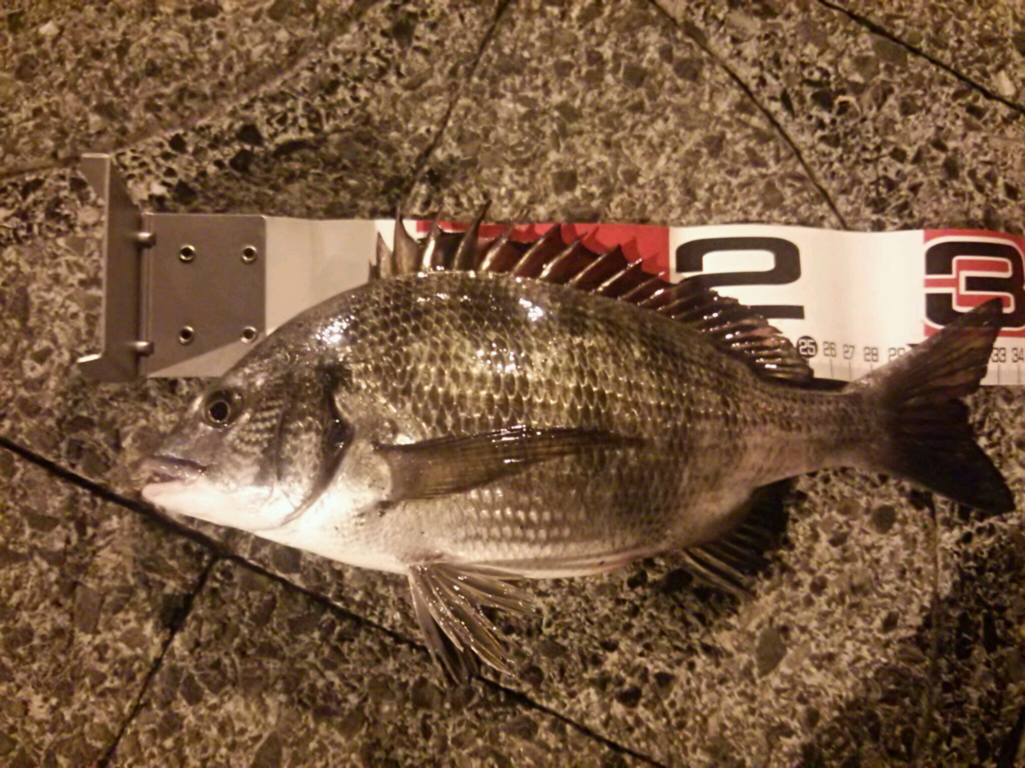 某所下で3カ月降りに夜中クロダイ33センチゲット!
