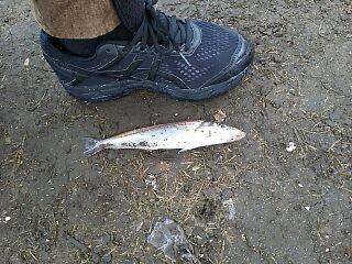 今日は夕方雨は降らない予報だったから某所下出没!するとマサ君も!2人で仲良く遣るも、マサ君タモ入れ、遠慮したのか3本バラシ!・・遠慮せんでええんよ!・・ドジ君、5連敗?と思いきや、海タナ 20?➊で連敗記録打破!・・ガメラ君も おめでとう!と祝福して呉れた!・・このガメラ君、メタボ気味だな!