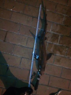某所下でどじ鮫さんが帰った後でどち鮫さん約80cmがワームで釣れました!