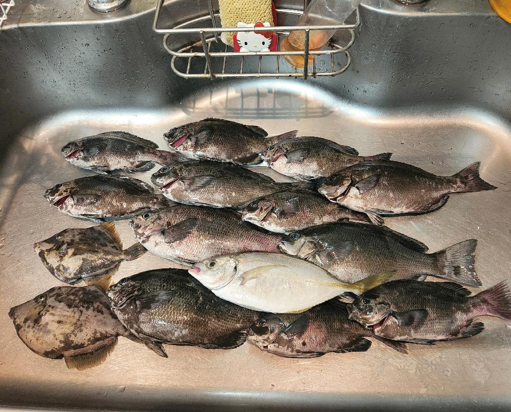メジナ、シマアジ、アイゴ、イサキ、オセン、フグ、カワハギ釣りました