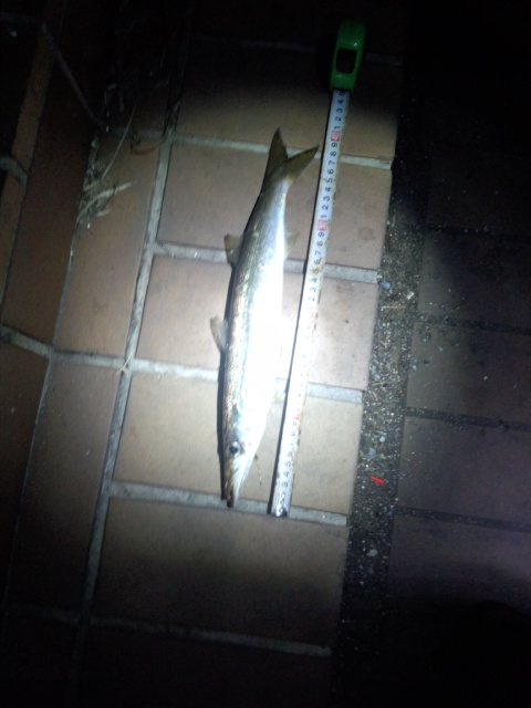 先日のタチウオ釣行の残りエサで、某所下で狙うも、うれしいゲストになりました(笑)