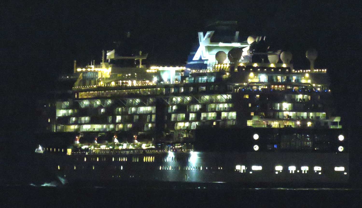 昨夜は黒鯛家族と遣りました。辛うじてフッコ35cmを一匹。坊主は免れ!黒鯛家族以外は余り芳しく無かった。昨日は飛鳥とセレブリティミレミアムが6時と7時に出港。久々にヒップをアップで撮ってしまいました。