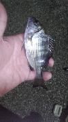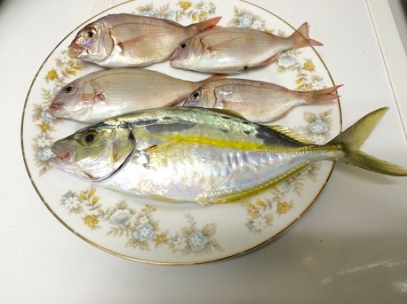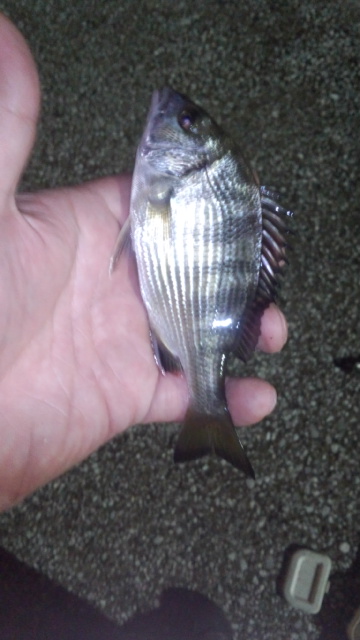2時間のショートタイムで、チビレ4匹、セイゴ2匹、22センチのメジナが1匹の釣果!!
