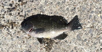 やっとのことで、飯岡漁港でメジナの姿を見れました