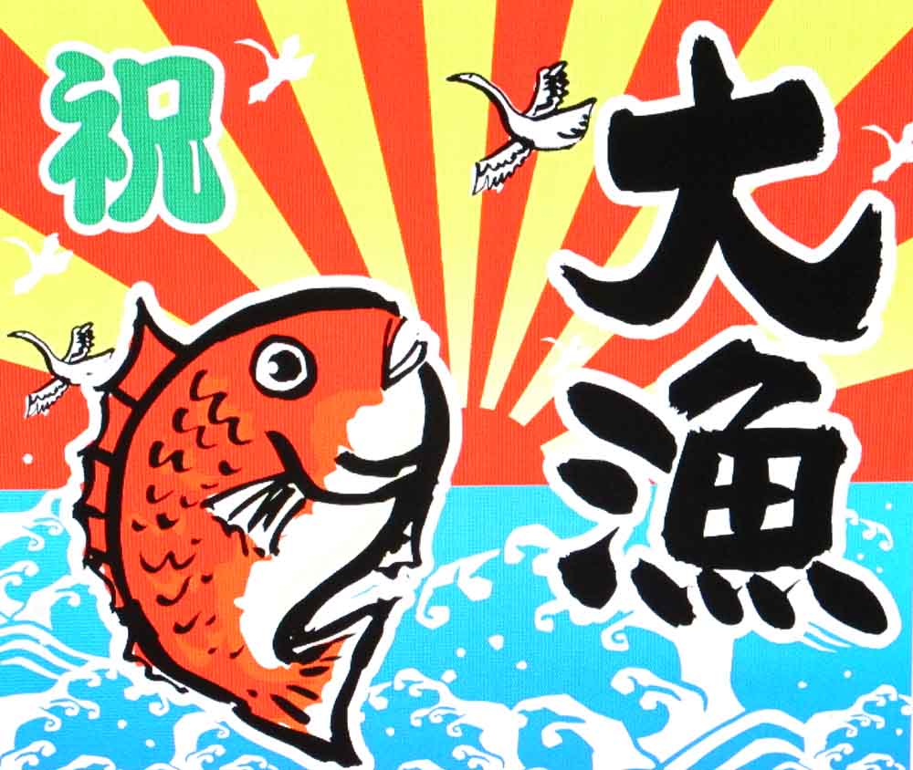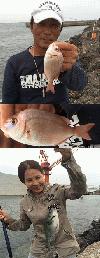 某所下、右潮で全く当たり無し!左潮になった途端、フッコが入れ食い状態!31?〜51?迄 ?匹と馬鹿釣れ!大漁旗を掲げよう!釣果の写真はメジナさんの方に送って有る。マサ君もチャリコ祭りでご満悦!?・・最近は、ストリンガーに掛けると おくたばり遊ばされる事が有るので釣ったら写真を撮って即、リリースするようにして居る!では、今季初、大漁旗です。