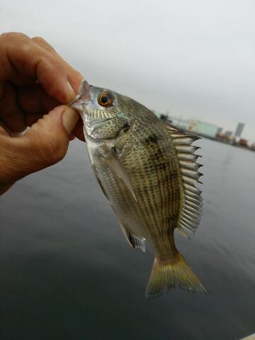 メンゴ!笛籠君、ミニマムな真鯛をGet!しとったです。証拠写真を載せます。今日のドジ君はメジナ 29?をGet!しましたです。小雨の中、頑張りました!明日は運動後、メジナの刺身で一杯です。メジナさん 糸引き鯵の30?クラスを宅急便でお願い!横浜からメジナの30?クラスを宅急便で送りますから!しかし、黒鯛家族のパパは遣りますな!写真は、笛籠君の真鯛 10?です。