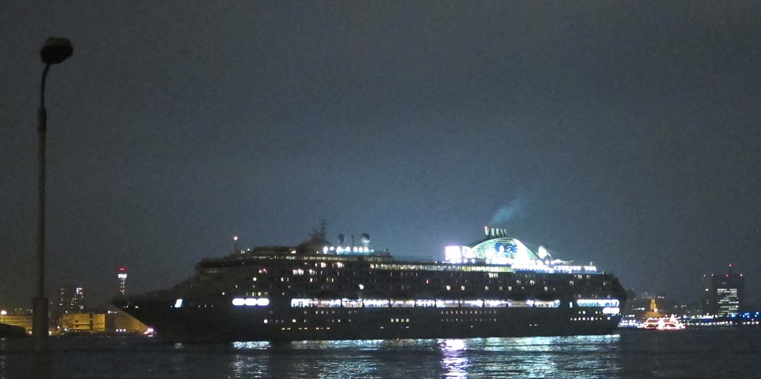 そうなんです。意気込んで1時間前に行くともう接岸でした。何も撮らないで即帰宅後再度夜の部でサン プリンセスを狙うために某所下に出没する。その間の釣りは坊主!成果はこの写真だけ!来月は良い船は入って来ない。釣りに専念するか!