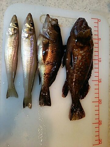 釣果はフッコ2本とメバルにカサゴが釣れました(笑)