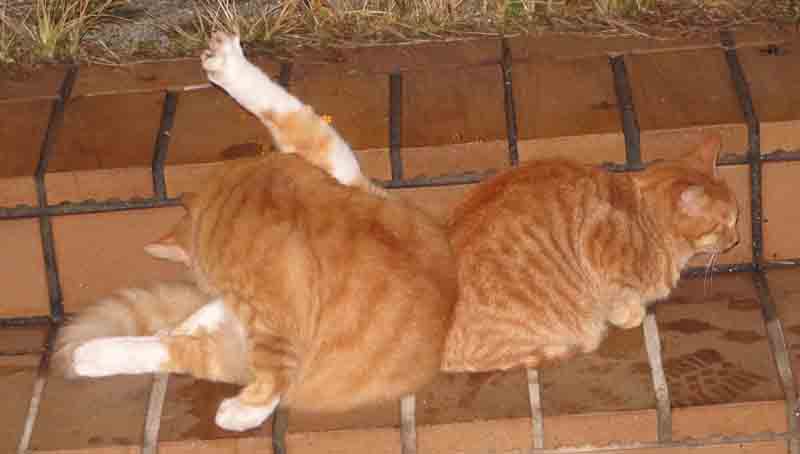 ヘボ殿にお知らせ。ベンチ右繁みに残り物 可能性有り。今日は右潮 殆ど諦めて居たが メジナ27?〜30?❷鯵 23?➊とまあ〜まあ〜の釣果。9時雨が降って来る。そこで退散。写真は 猫が一発やった後、後始末?あそこを拭き拭きしていた。元気が有って良いな!