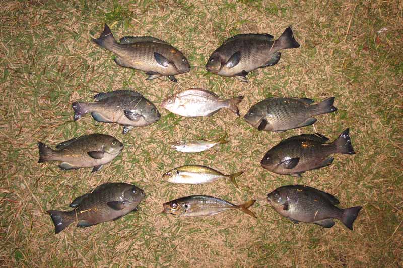 某所下へ深夜入り(^_^;)アジは釣れないけど〜夜メジナばかり7枚釣れた(^_^)v