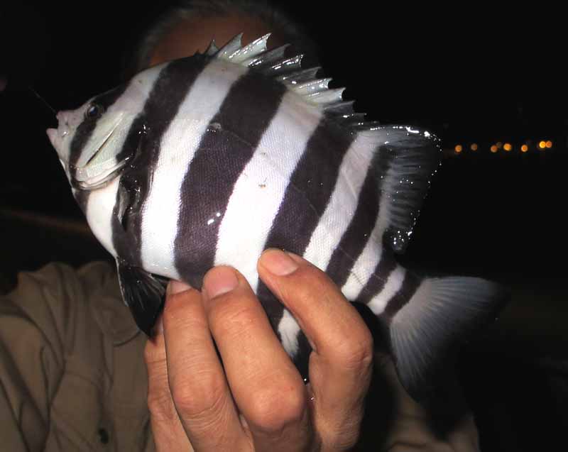 ドジ鮫さん、夕食後にメジナ入れ食い。