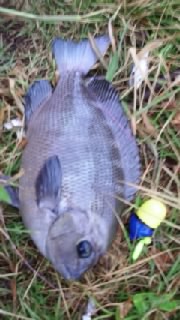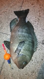 今まで一度も釣り上げて無い55cm超えクロダイさん(^_^;)我が家の駐車場裏に居たのかよ〜(笑)