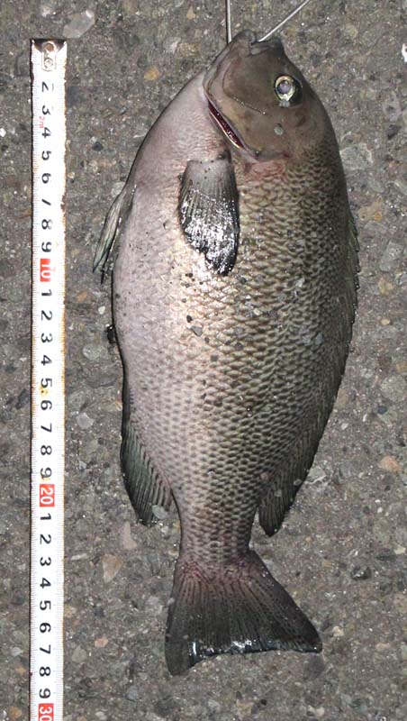 懐かしい忌み嫌われたポイントですね。昔はお世話になりました。最後に行ったのは10年前かな?しかしメジナ30?はラッキーでしたね。昨日は花火 今日は危険日!当然 昼から一杯の世界です。明日はスポセンで運動後餌を買い夕方から再開です。あの岸壁は30?離れると釣れません。鯵はどこに行ったのだろうか?猫にヒモジイ思いをさせています。勘弁ね!