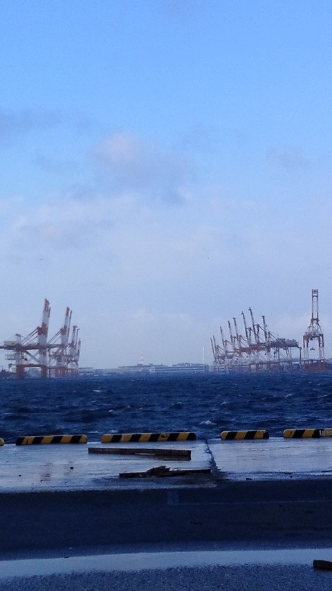 まだまだ強風!白波が這い上がりゴミや材木が散乱しております(>_<)