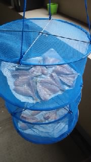 とりあえず塩水で洗い、酒を着け干し籠へ(^。^;)