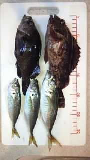 夕方からアジ釣り、カサゴ・メバル・メジナ・アジ釣れたけどフッコ・クロダイ釣れない(笑)