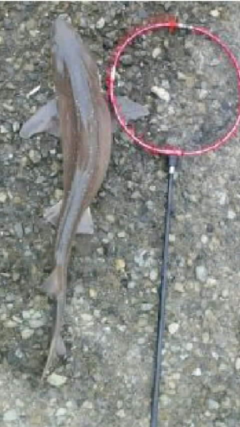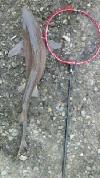 チチブ釣りの短いアオイソに食いついたサメさん97cm釣れました(笑)
