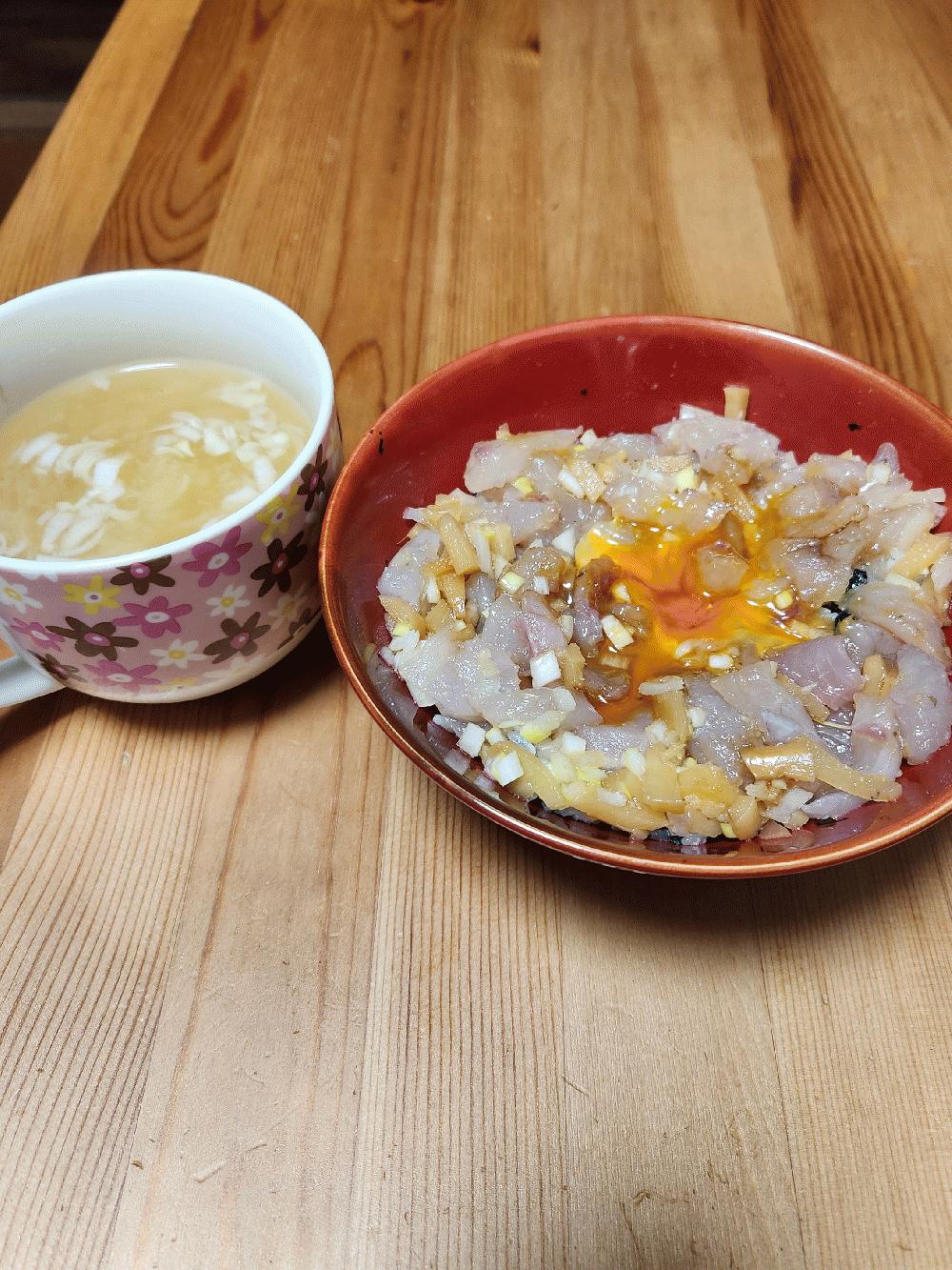 福浦のメジナでメジナユッケ丼作った、メンマも刻んでメジナと一緒に漬け丼に