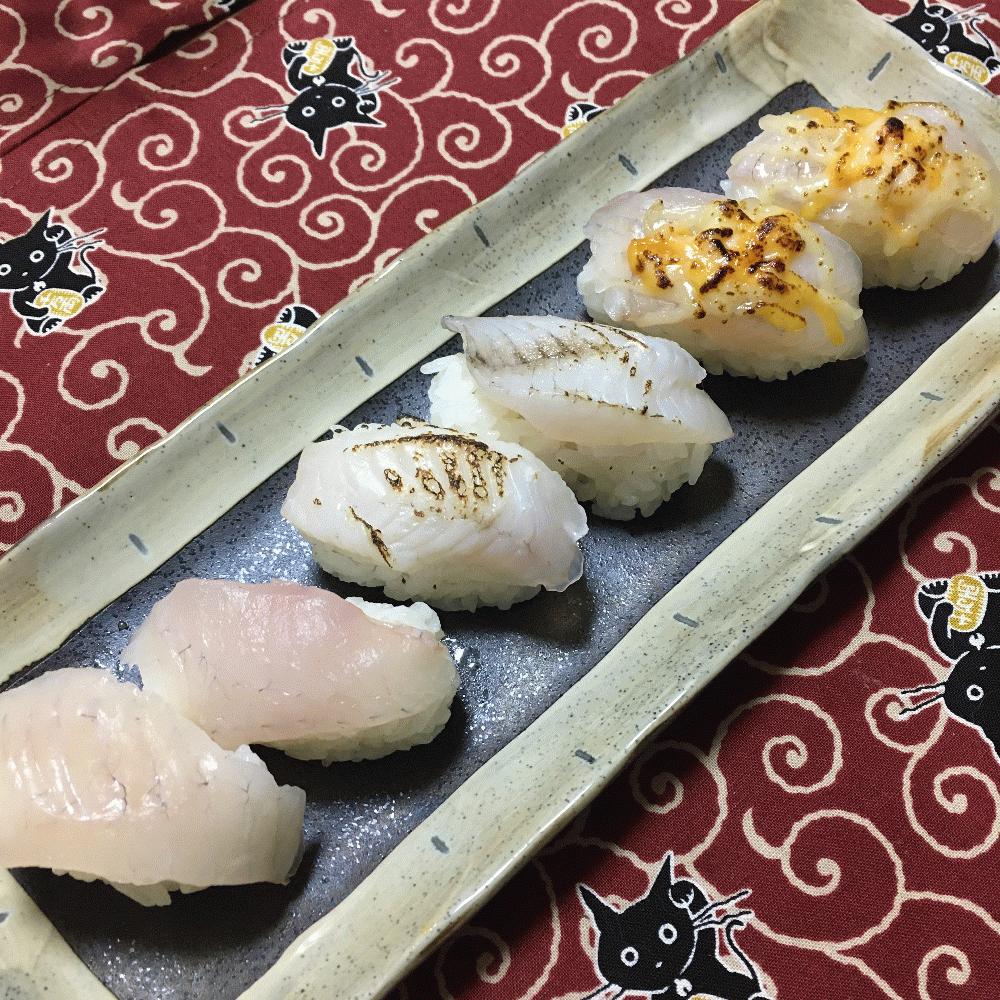 メジナの寿司(ノーマル、炙り、チーズ乗せ炙り)
