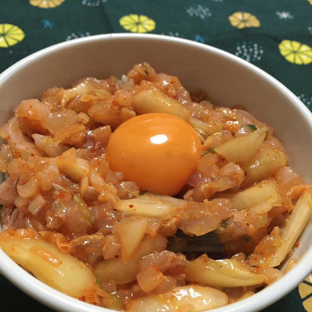 ユッケ自体はマゴチの軍艦巻きのレシピとほぼ変わらないので省作り方は省略。